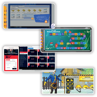 Desarrollo de 32 cursos eLearning para empresas en seguridad eléctrica, sistemas comerciales y procesos corporativos.